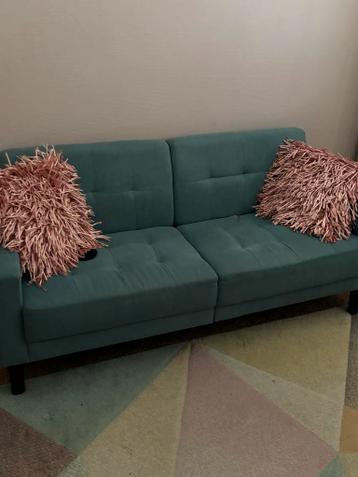 Gratis!! Stijlvolle groene 2-zitsbank, inclusief sierkussens. De bank is in goede staat en perfect voor een kleine woonkamer of appartement. Comfortabel en klaar voor gebruik!