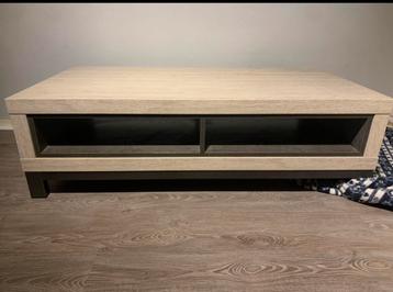 Deze salontafel is in gebruikte staat, maar nog steeds in goede conditie. De tafel is rechthoekig en heeft een handige opbergruimte onder het tafelblad. Ideaal voor het opbergen van tijdschriften, boe