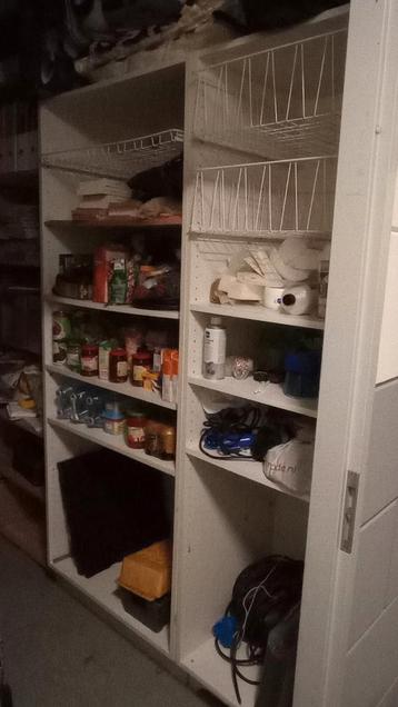Gratis af te halen wegens overcompleet: twee witte kasten (205x80x50 en 205x60x50), in goede staat, alle legplanken beschikbaar. Eventueel met drie draagmanden, die er origineel niet bij horen en iets