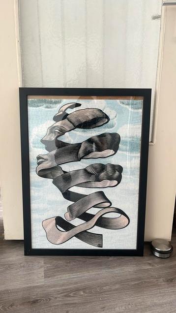 A 75x55 picture frame, currently holding a puzzle of a work by escher.
