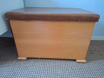Gratis 2 speelgoed / opbergkisten tevens bankje hout degelijke en vol houten kist waar ook op gezeten kan worden. Het deksel schaniert. Geen lichte kist, er kan ook door volwassenen opgezeten worden z