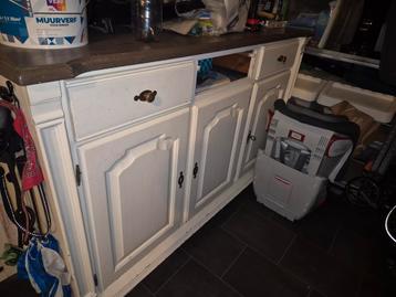 Een charmant vintage dressoir, perfect voor extra opbergruimte. Het dressoir heeft zowel deuren als lades, waardoor het ideaal is voor het opbergen van diverse spullen. De conditie is gebruikt, maar h