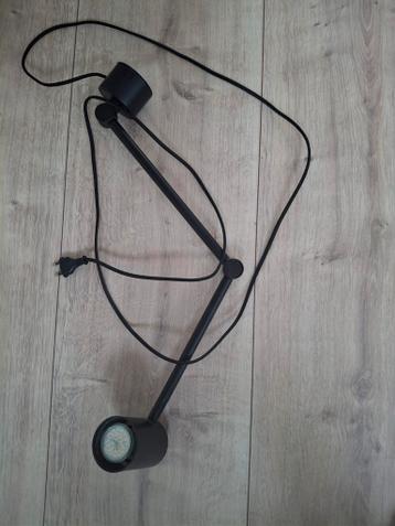 Strakke, verstelbare wandlamp in zwarte kleur. De lamp is in goede staat en geeft helder licht. Gemaakt van metaal en kunststof.