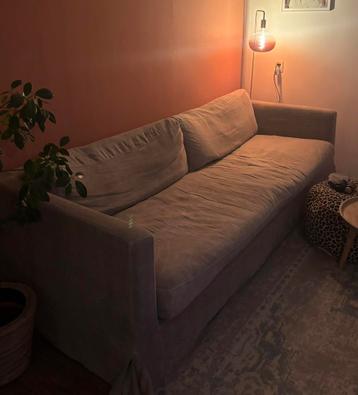 Beige driezitsbank. 237 Cm breed, 95 cm diep en 68 cm hoog. Eén slijtage plekje op de bank. Gratis ophalen