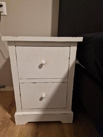 Leuk wit vintage nachtkastje met twee lades