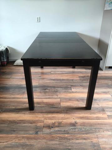 Een gebruikte ikea uitschuiftafel. Ideaal uitbreidbaar tot 2.20M. Kleinste formaat is 1.40M. Breedte is 80cm en hoogte 74cm. Hij is gebruikt en heeft op het blad en aan de randen wel beschadigen.