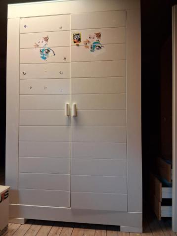 Mooie, degelijke kledingkast met twee schappen en een roede om kleding op te hangen. De kast is in goede staat en biedt veel opbergruimte. Ideaal voor de kinderkamer of slaapkamer.