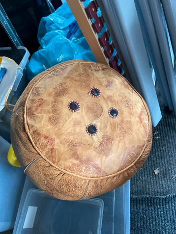 Authentieke marokkaanse leren poef. Handgemaakt met traditionele patronen. Perfect als zitplaats of decoratief element. Gebruikt, met wat schade.