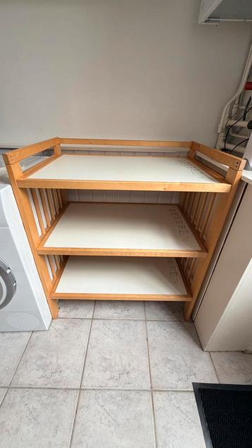 Commode voor de baby, 82cm breed, 54cm diep en 94cm hoog wij hebben hem gebruikt als opbergrek. Van ikea, mooi stevig meubel. Eenvoudig maar als je er om zit te springen erg functioneel. Gratis af te