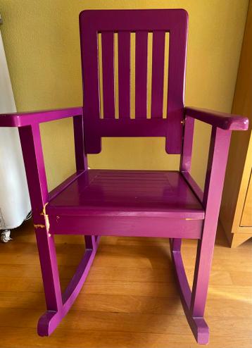 Houten schommelstoel. De stoel is paars geverfd en is gratis af te halen in amersfoort.