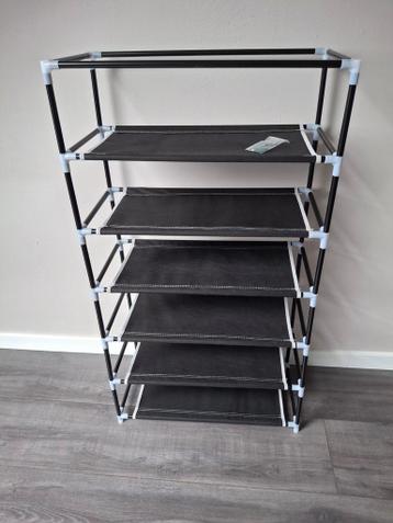 Handig schoenenkastje van stof voor het opbergen van 12 paar schoenen. Ideaal voor het organiseren van je schoenencollectie en het besparen van ruimte. Aan de achterkant rechtsonder zit een scheurtje