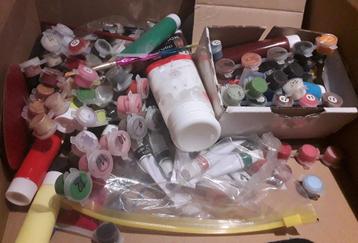 Meer dan honderd potjes en tubes arylverf. Sommige aangebroken en de rest gloednieuw. Voor de ijverige hobby-kunstschilder. Zie de twee voorbeelden op de foto's. Even bellen voor een afspraak en z