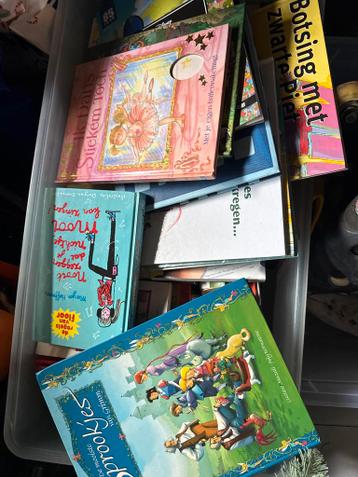 Volle krat met diverse kinderleesboeken. Verschillende niveaus en genres. Gratis af te halen in [plaatsnaam]. Ideaal voor jonge lezers!