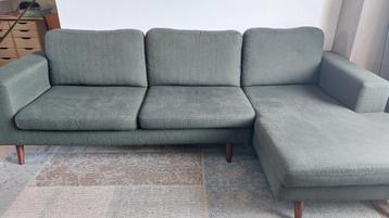 Groene stoffen bank. 2.85 M breed l deel is 1.54 M lang zithoogte ongeveer 0.40-0.45M gratis op te halen voor vrijdag 6 maart