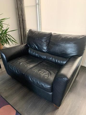 2-zitbank, gebruikt. Er zitten hier en daar gebruiks/slijtage plekken in het leer, maar zit nog prima.
