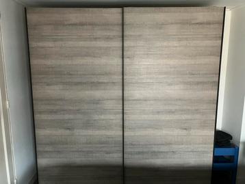 Grijze eiken kledingkast van het merk leen bakker met schuifdeuren. Afmetingen: 207 cm hoog, 200 cm breed en 63 cm diep. Ideaal voor het opbergen van kleding en andere spullen. De kast is in goede sta