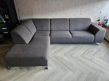 Bruine hoekbank die gratis kan worden afgehaald. De bank heeft wat gebruikerssporen, zoals haakjes van een kat en kan een poetsbeurt gebruiken. Desondanks is het nog een stevige en goede bank.
