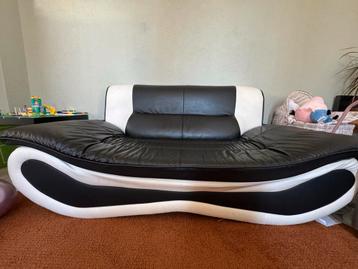Mooie designer look bank voor 2 personen. De bank is niet doorgezeten en verkeert in goede staat. Er zitten speciale voetjes onder de bank om hem van de grond te zetten, wat een ruimtelijk effect geef
