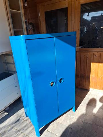 Gratis af te halen: een blauwe kledingkast en een bijpassend ladenkastje, perfect voor een kinderkamer. Beide items zijn gebruikt en hebben wat liefde en aandacht nodig om weer te stralen. Leuk als se