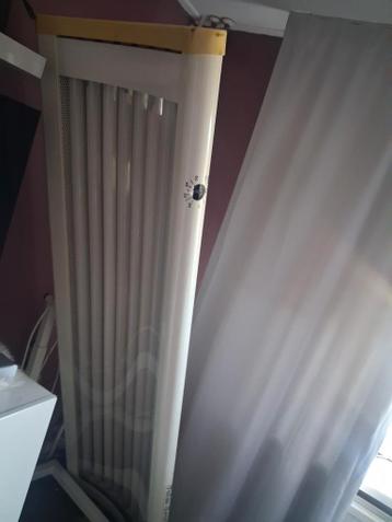 Te koop: een gebruikte zonnebank. Het apparaat is in goede staat en werkt naar behoren. Ideaal voor een mooie bruine kleur het hele jaar door. Aantal lampen: zie foto's. Model: zie foto's. Con