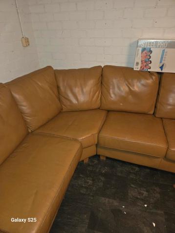 Comfortabele en ruime hoekbank van leer. Ideaal voor een gezellige avond met familie of vrienden. De bank is gebruikt, maar in goede staat en kan nog jaren mee. Nergens gescheurd ! Perfect voor een gr