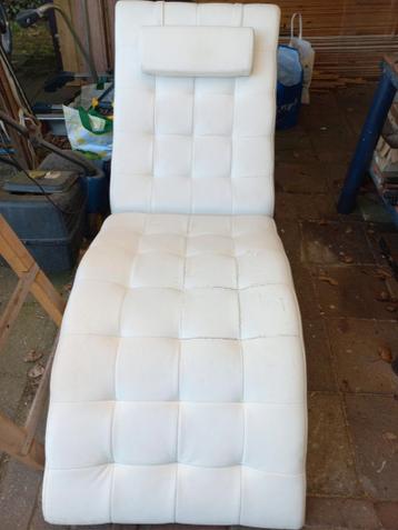 Comfortabele witte ligstoel, ideaal om te ontspannen. De stoel heeft lichte gebruikssporen, zoals te zien op de foto's, maar is verder in goede staat en functioneert perfect. Perfect voor in de wo