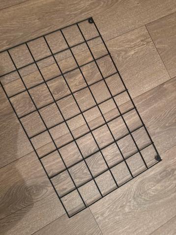 Dit zwarte metalen raster is ideaal voor het ophangen van foto's, notities, kleine plantjes of andere decoratieve items. Het kan ook gebruikt worden als praktisch opbergrek in een kantoor of keuke