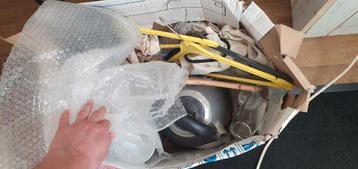 Gratis afhalen: doos met allerlei spullen. Van set glazen tot katoenen tote bag, waterkoker (gebruikt maar nog goed werkend), kledinghangers, pedaalemmertje en dergelijke. Gehele doos in 1x ophalen, m