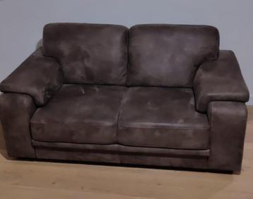 Mooi 2-zits bankje. Bruin, suedelook. Zit heerlijk, niet doorgezakt. Overcompleet, vanwege een verhuizing. Afmetingen: 1.65 X 0.90