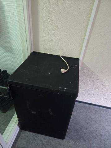 Gratis af te halen: een zwart geverfde diepvries. Het apparaat werkt nog naar behoren, maar heeft wel ongeveer een jaar uitgestaan.