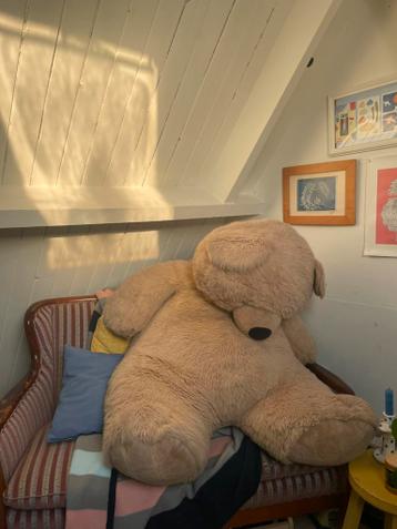 Deze enorme beer zoekt een thuis! His fur is a bit discolored and he’s quite heavy, but still very comfortable and possible to carry. Length is about 70cm. Let me know if you have any questions or wan