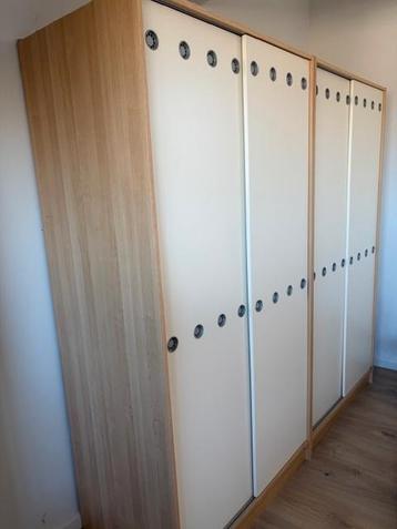 Mooie kleding kasten lxbxh 100 cm x 60 cm x 195 cm met schuifdeuren 2 stuks zgan, hang gedeelte en een legplank , kan ook volledig met legplanken worden gebruikt. Eiken wanden met witte schuifdeuren