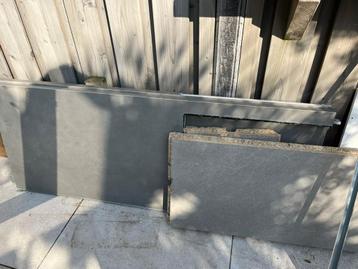Te koop: een gebruikt keukenblad met geïntegreerde spoelbak en kraan, ideaal voor een kleine keuken of bijkeuken. Daarnaast wordt de inhoud van een draaikast aangeboden, bestaande uit twee handige dra
