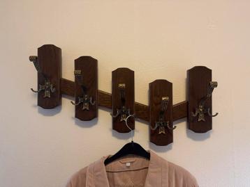 Hoogeveen: gratis ophalen een nette donker eiken kapstok met 5 metalen haken. Schuinlopend model, 64 cm breed.