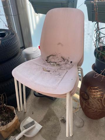 Gratis ophalen uit leusden. 3 Roze stoelen met witte poten. Hebben een hele tijd buiten gestaan dus zijn niet zo netjes meer. Er zit een gaatje in het zitvlak geboord om zo water weg te kunnen laten s