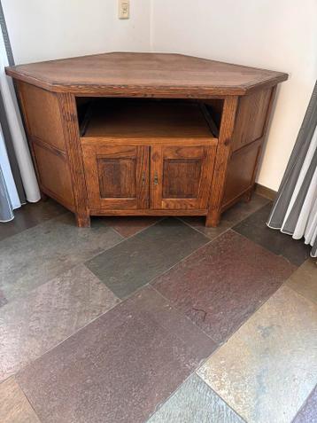 Stevig houten tv-meubel gratis af te halen. Ideaal voor een hoekopstelling in de woonkamer. Ophalen in venlo