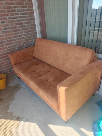 Tweezitsbank in cognac kleur. De maat is 164*86cm. Ideaal als eerste bank op een studentenkamer bijvoorbeeld. De bank kan alleen opgehaald worden.