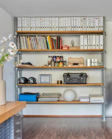 Stoer wandrek van echte steigerpijp 239 hoog 210 breed 30 cm diep