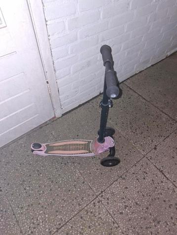 Leuke roze step met lampjes in de voorste wielen. Plastic aan de voorkant is afgebroken maar step is nog goed dus hopelijk kunnen we er iemand blij mee maken