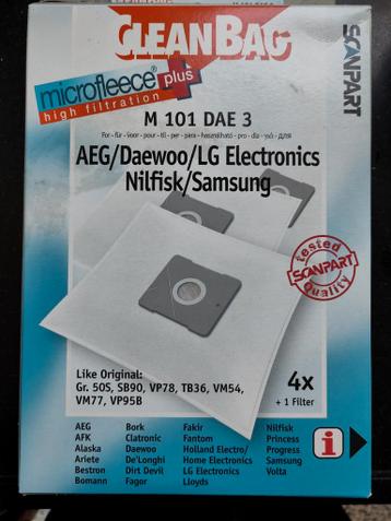 Set van 3 hoogwaardige microfleece stofzuigerzakken (m 101 dae 3) met hoge filtratie, geschikt voor diverse merken zoals aeg, daewoo, lg electronics, nilfisk en samsung. Deze zakken zijn vergelijkbaar