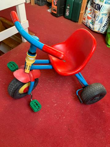 Deze driewieler is goed gebruikt, maar kan zeker nog een ronde mee! Hij heeft geen terugtraprem, maar een handrem aan de rechterka