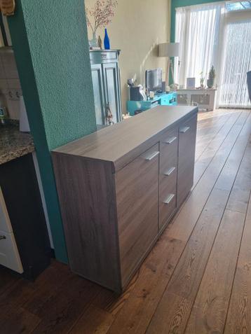 Onbeschadigd, 100% functioneel. Mooi gefineerd met drie laden. Lxbxh 150x40x87.