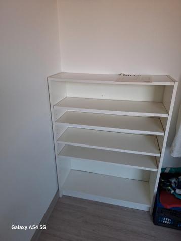 Te koop: een nette, laag model ikea billy boekenkast in het wit. Deze veelzijdige kast is ideaal voor het opbergen van boeken, decoraties of andere spullen. Met afmetingen van 106 cm hoog, 80 cm breed