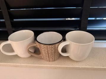3 Mokken - Wit en Beige gratis