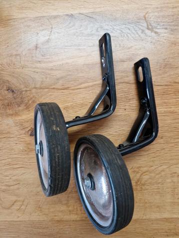 Gebruikte fiets zijwieltjes. Geschikt voor kinderfietsen. In goede staat, maar vertonen gebruikssporen.