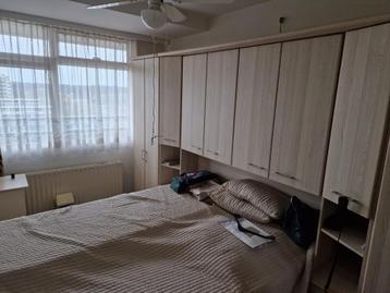 Deze ruime kastenwand met een vast tweepersoonsbed biedt een complete slaapoplossing. Ideaal voor slaapkamers waar efficiënt gebruik van ruimte gewenst is. De kast biedt veel opbergruimte en het bed i