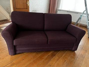 Gratis mooie paarse tweezitter zo goed als nieuw!!! Breedte 190 cm diepte 90 cm hoogte 92 cm er mist één plastic dopje van een poot maar dat is makkelijk te herstellen gratis ophalen zaterdag7 maart t