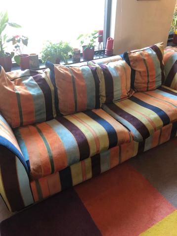 Gratis af te halen vrolijke gezellige kleurrijke bank zit heerlijk gebruikt, maar kan nog prima een ronde mee leuk voor een studentenhuis bank is 2.30 Breed 1.00 Meter diep kan vanaf zondagmiddag opge
