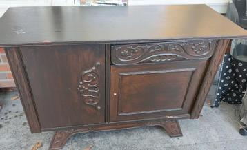 Vroeger als tv kastje gebruikt vandaar de achterwand er uit. Leuk om een likje verf te geven.