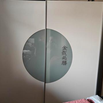 Vleugeldeur kledingkast met alleen hang gedeelten. Wel mogelijkheden om planken in te bouwen. 225 Cm breed diep 62 cm met deur 68 cm 222 cm hoog zelf uit elkaar halen.